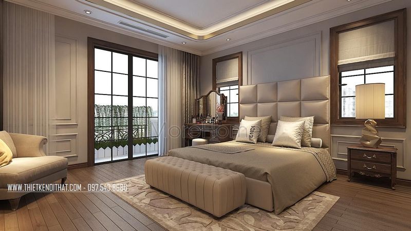 Thiết kế phòng ngủ master mang phong cách tân cổ điển đep, sang trọng và vô cùng tinh tế